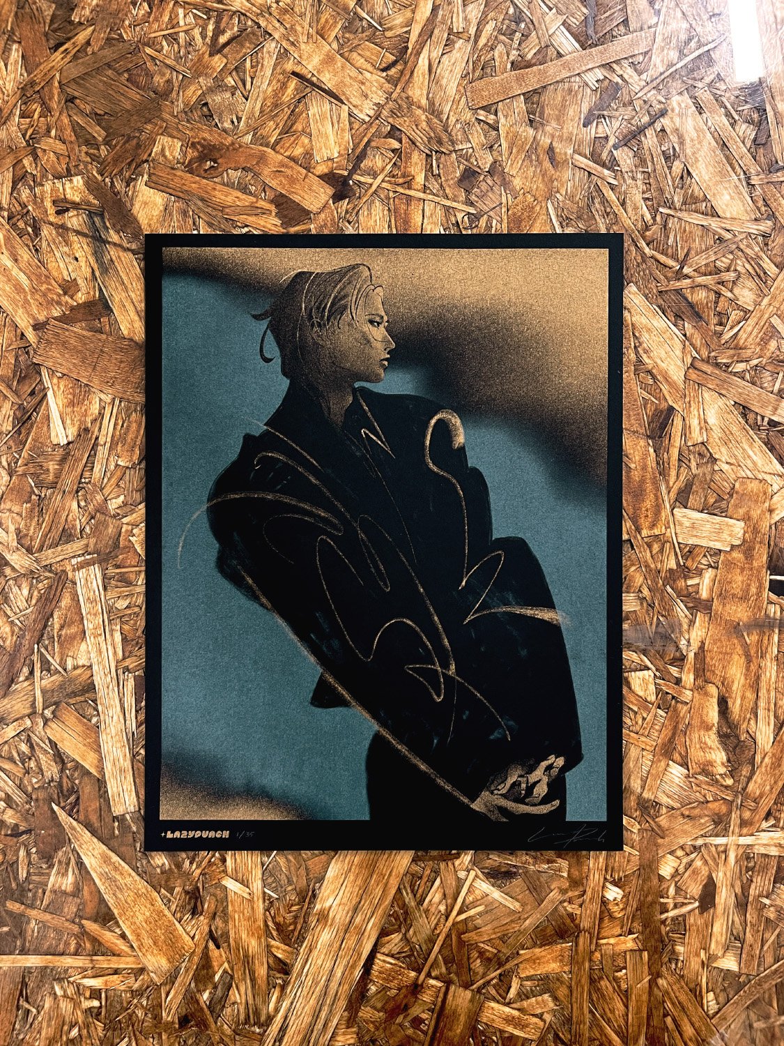 The risograph printer is a very charming, eco-friendly machine that layers vivid ink colors with a process similar to screenprinting. Due to this technique, each print is unique and has it's own small quirks! Every print is manually registered, trimmed, inspected, and signed by me. Please be careful when handling the print as the ink doesn't ever truly dry and can be prone to smudging or fingerprints. Avoid direct sunlight.