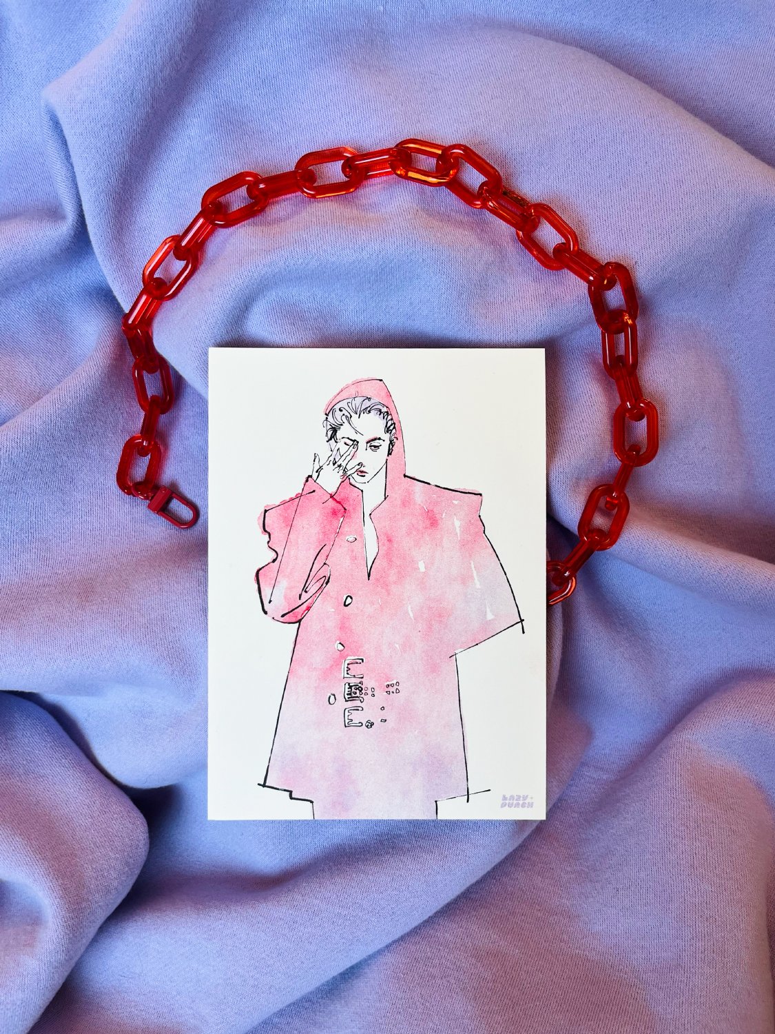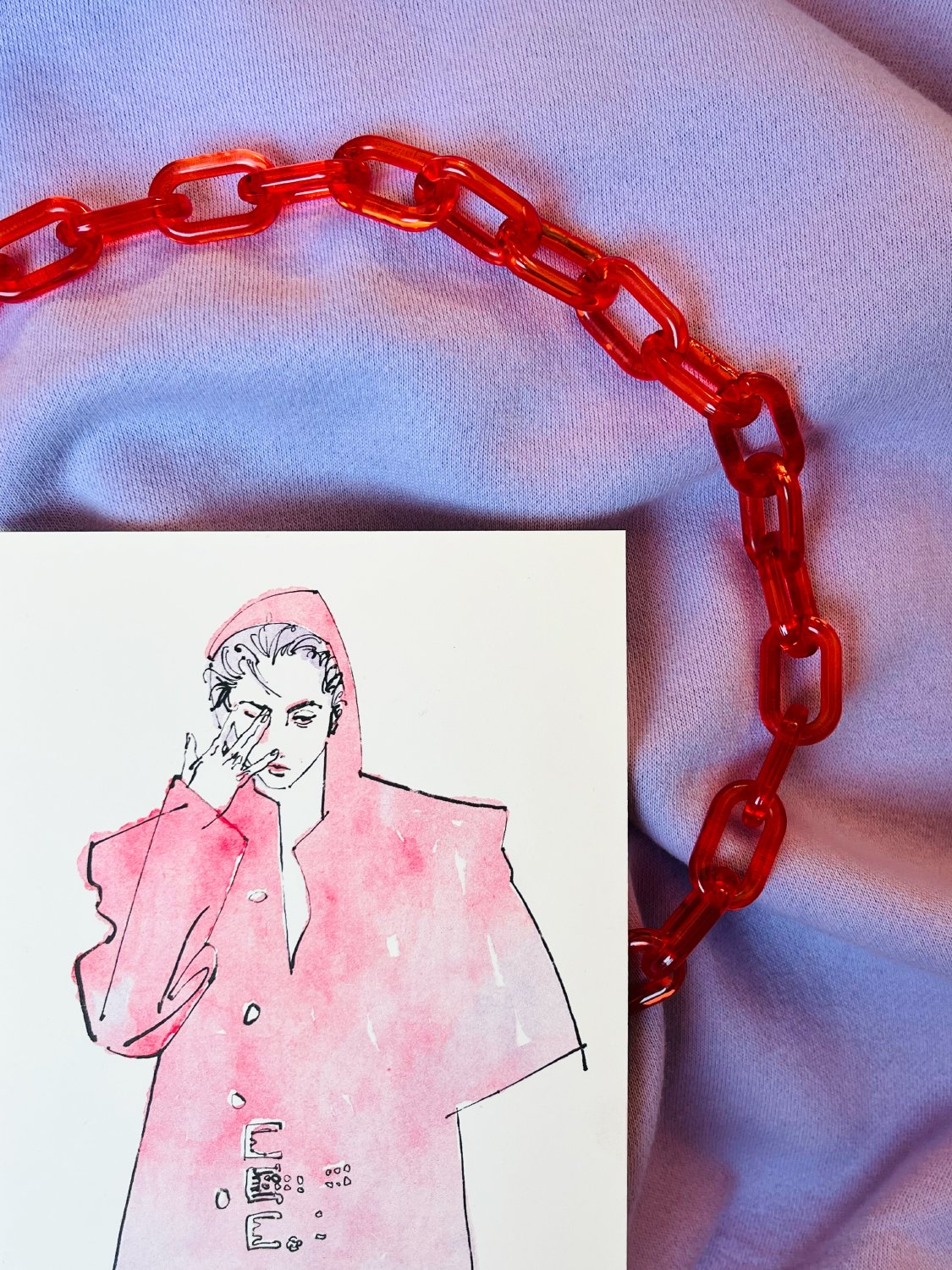 orchid, bright red, & black ink